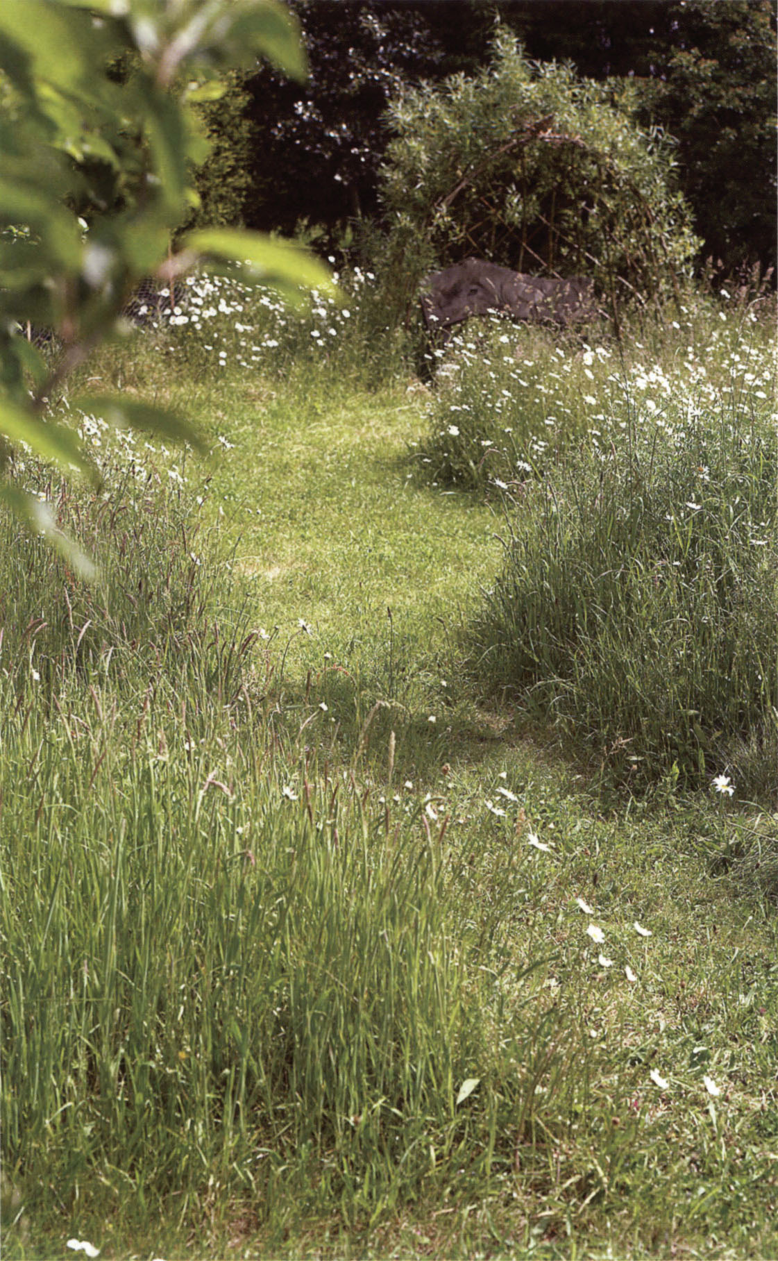 Grass left unmown allows wild flowers to grow. Here ox-eye daisies (Leucanthemum vulgare) look delightful among the long grasses, and will encourage wildlife, too.