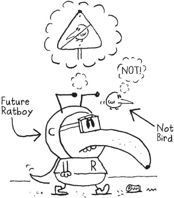 ‘What’s all this Future Ratboy business?’ asked Mr Hodgepodge, looking up from the photo. I was going to stand up and explain, seeing as I’m Future Ratboy’s number-one fan, but I was still a bit dizzy from my eye roll so I just sat there like a loser.