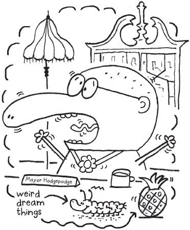 ‘Don’t worry, Mayor Hodgepodge, we’ll stop Professor Smugly!’ I said, and I looked at his face to see if he was impressed, but he was too busy screaming and kicking at the hoverpoo to notice.