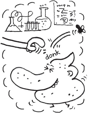 ‘Hmmm . . . a talking hoverpoo. That could be useful,’ said Professor Smugly, flicking me off Not Bird’s head.