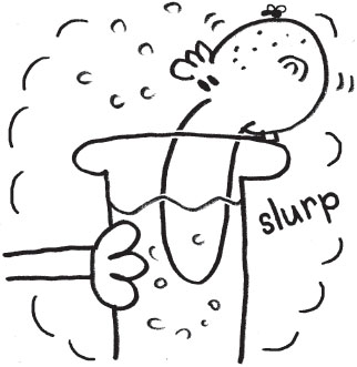 He perched on the edge and dipped his beak in. ‘Ahhhhhhh,’ he said, and he turned straight into a hoverpoo.