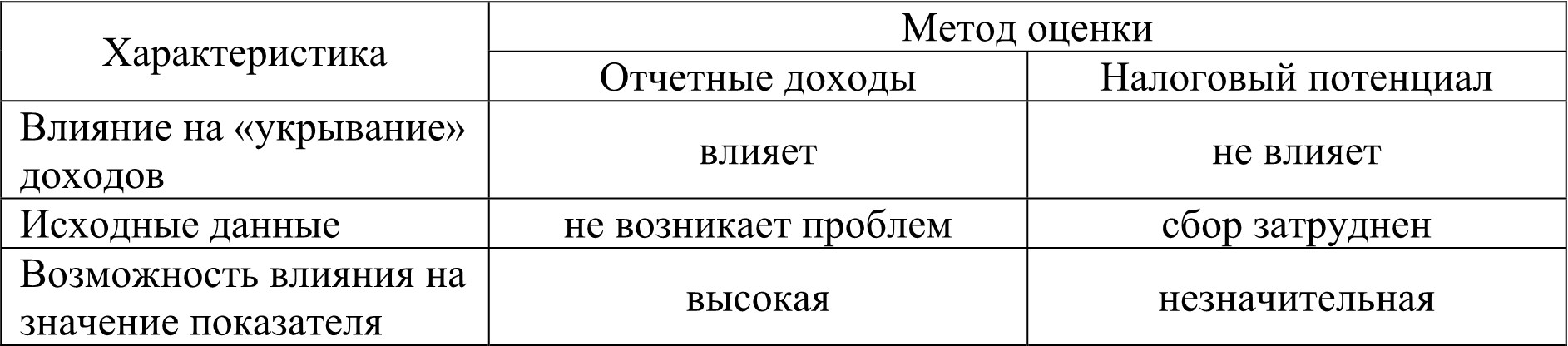 Каждый регион характеризуется своим уровнем доходов, получаемых на душу населения, что связано, с одной стороны, различиями в уровне экономического развития, отраслевой структуры, с другой, фискальными усилиями местных властей. В высокодоходном регионе сбор налогов в расчете на душу населения может быть значительно ниже, чем в регионе с меньшей налоговой базой за счет разных фискальных усилий властей. В связи с этим возникает необходимость в умении правильно оценить налоговый потенциал регионов и муниципальных образований.