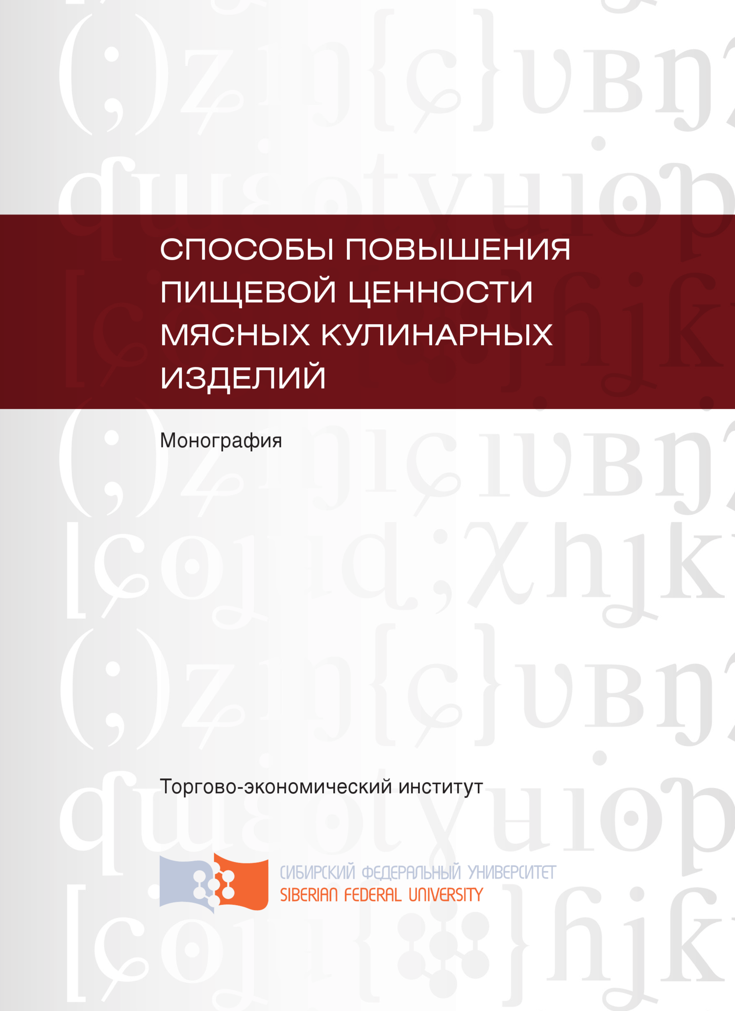 В данной монографии представлены результаты научной работы по повышению пищевой ценности мясных рубленых изделий путем введения в них натуральных добавок растительного происхождения.