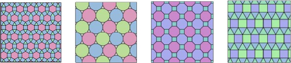 Полуправильными тесселяциями называют такие тесселяции, в которых использованы правильные многоугольники двух или трех типов и все вершины одинаковы (рис. 6).