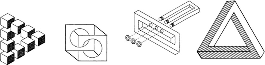 Невозможные фигуры – это фигуры, изображенные в перспективе таким способом, чтобы выглядеть на первый взгляд обычной фигурой. Однако при более внимательном рассмотрении зритель понимает, что такая фигура не может существовать в трехмерном пространстве (рис. 7).