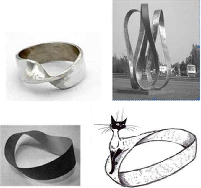 Лента Мебиуса – это трехмерный объект, имеющий только одну сторону. Такая лента может быть легко получена из полоски бумаги, если перекрутить один из концов полоски, а затем склеить оба конца друг с другом (рис. 8).