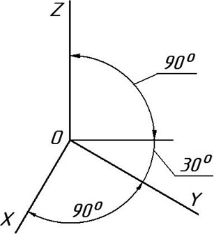 Для горизонтальной симметрии угол наклона оси ОY = 30° при сохранении прямого угла между осями ОХ и ОZ (рис. 14).