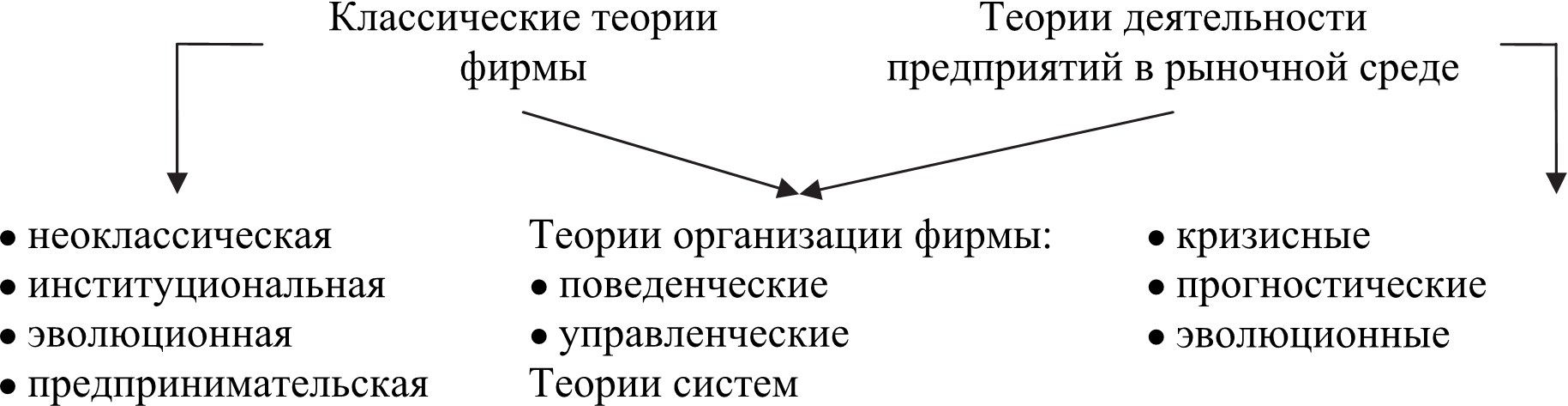 Рис. 1. Группировка теорий организации предприятий в условиях рынка
