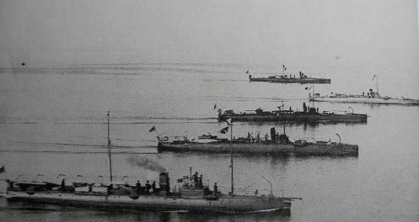 In May 1905, the famous Tsushima battle will take place. About 85 ships of the Japanese fleet are attacking the following 38 pennants of the 2nd Pacific squadron of Admiral Rozhdestvensky following Vladivostok. The Mikasa flagship gets 40 hits of large-caliber (305 mm.) Russian shells, but thanks to their stiff fuses and the excessively “safe for travel in the tropics” moisture of pyroxylin, it does not have any serious damage. Formed in the armor holes, the Japanese plug in traffic jams. The ships of the Pacific squadron, after several discouraging clashes, one by one break through to their destination, fight, are thrown on a sandbank, or surrender. Only three of them come to Vladivostok. Admiral Z. Rozhdestvensky, the carrier and distributor of sacrificially suicidal feelings throughout the Russian fleet, climbs aboard the Mikas… Japan loses two or three destroyers in this battle. In the photo – Japanese ships during the battle of Tsushima. Tsushima is a small island in the Korean Strait, and its name translates as “Donkey Ears.” In total, about one hundred main and auxiliary ships take part in the battles of the Russo-Japanese war from each side. The loss of the Russian fleet 64 pennants, the Japanese squadron 24. Most of the latter destroyed by mines. After exhaustion of forces (the Japanese foreign debt increases fourfold, the Russian one third) and the huge losses – the Japanese army – 80,000 killed, the Russian army 60,000, September 5, 1905, both sides, with the mediation of Theodore Roosevelt, make peace. The militarists receive half of Sakhalin, Korea and the territories of modern China.