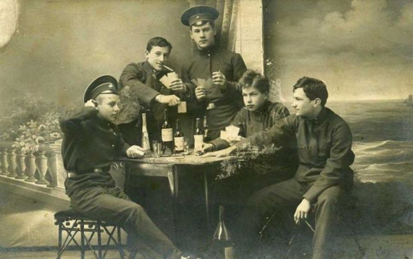 These Russian high-school students, with all the attributes of adulthood, are most likely not going to take the path of the revolutionary struggle. In the noisy hall of the restaurant. What is listening to our golden youth? Perhaps a romance performed by Nadezhda Plevitskaya “The Seagull” (1908)? Photo 1910 …Надежда Плевикая, романс Чайка, слушать