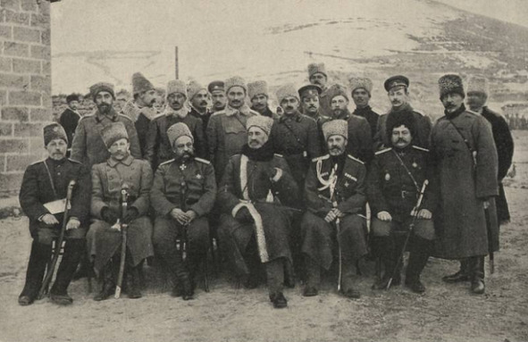 Erzurum offensive operations of the Russian troops (the Caucasian army) were preceded by successful defensive actions – the Alashkater operation on July 9-August 3, 1915, and the Battle of Keprikeo on December 28, 1915 – January 7, 1916. The attacking Turkish corps were bled off territory), or else and significantly pushed aside. Part of Persia is occupied. In order to avoid the entry of this country into the war, the troops of the Russian Empire go on the line of direct attack deep into Turkey. In the photo – the commander of the Caucasian army, General N. Yudenich (center) with a group of officers, 1915.