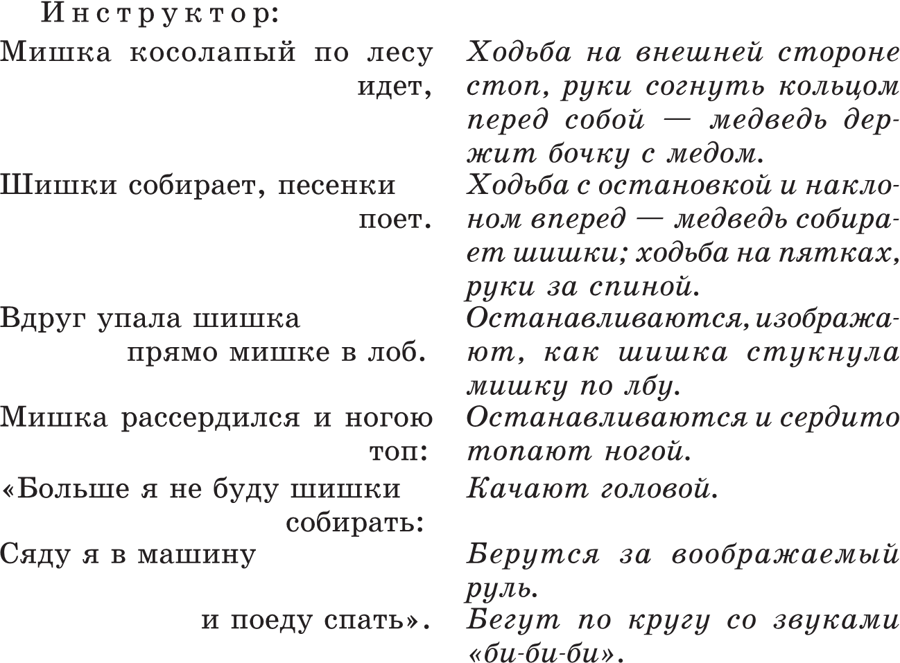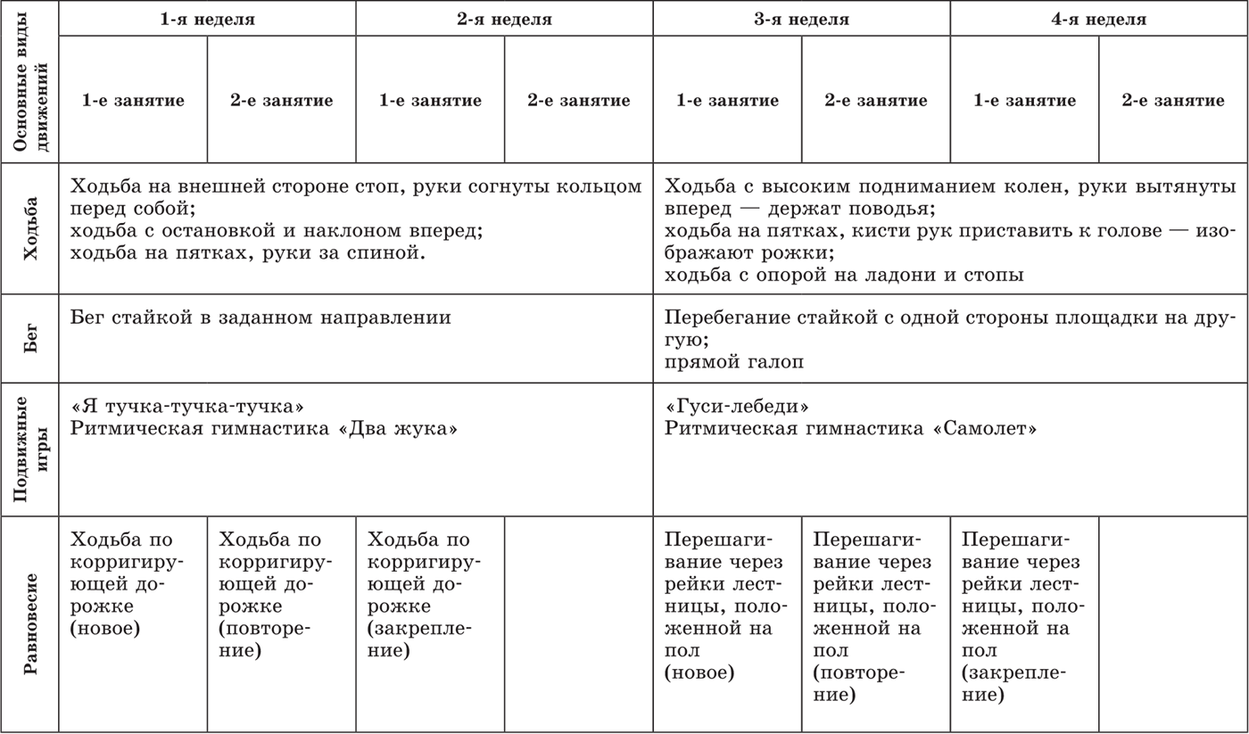 1–2-я неделяВВОДНАЯ ЧАСТЬКорригирующая ходьба по кругу под стихотворение «Мишка косолапый».