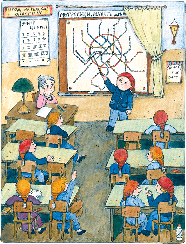 В школе малыши изучают метро, строение станций, расположение проходов в туннелях, устройство поездов. Учатся исправлять различные неполадки. Самым прилежным ученикам позволяют по ночам выходить с фонариками на станции и помогать взрослым в ремонте. Иногда так повезёт, что им разрешат забраться в кабину машиниста, когда поезд стоит в депо́ – так называют большой гараж для поездов.