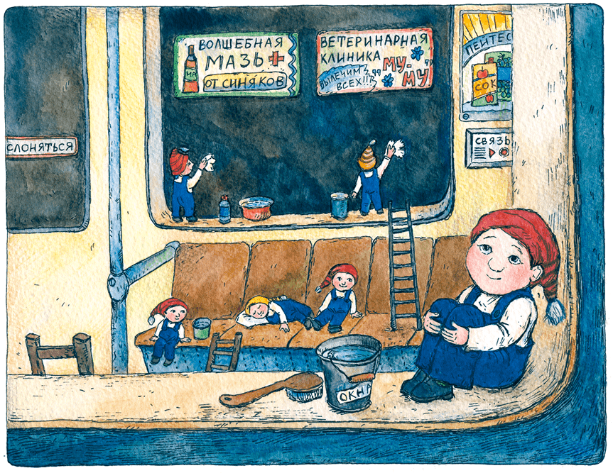 Когда поезд вдруг остановится в тёмном туннеле и стоит так минуты две или три, это значит, что машинист пропускает метрольцев через пути. А они спешат, торопятся, карабкаются на маленьких ножках через рельсы, перетаскивают свои ящички с инструментами. А потом помашут машинисту ручками и скроются за потайной дверцей в стене туннеля. Машинист улыбнётся, снова включит мотор, и поезд поедет дальше. Однажды я и сама слышала, как метрольцы топают башмачками, пыхтят, гремят своими ящичками. А когда поезд тронулся, я успела разглядеть, как исчезает в тёмном переходе чья-то лохматая голова. Но тогда я ещё не знала, что это метрольцы, зато теперь знаю.
