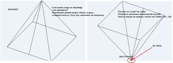 Как образно передать это состояние цельности символически? Правильной геометрической фигурой: пирамида. Глаза видят, как видят, а внутреннее зрение видит то, что ВЕРХ—это ГЛУБИНА ВНУТРИ.