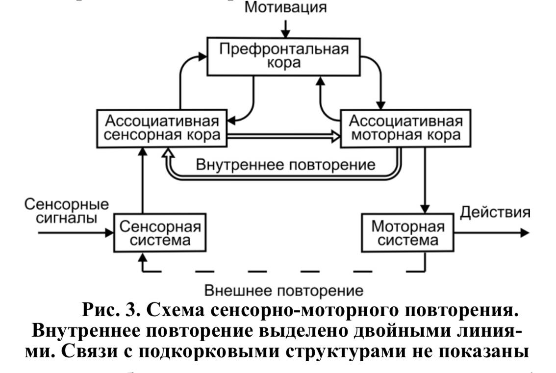 Прошу обратить внимание на дату рождения идеи. 1987 год. В том году я только писал диплом на факультете Кибернетики МИФИ. Я обнаружил эту статью после долгих целенаправленных поисков только в начале 2019 года. И был поражен точностью совпадений со своей моделью, которую начал использовать перед 2000-м годом. Очень странно, что такая простая и, кажущаяся мне очевидной, идея «лежит на полке». Но дальнейшее изучение работ Сергина В. Я. показало, что увлечение нейроинформатикой заставило его «нырнуть» в изучение реальных физических процессов деятельности Психики. Где он и пребывает в настоящее время без каких-либо идейных сдвигов. Погрязнуть в мириадах реальных процессов, ежесекундно происходящих в Психике, пытаясь по одной волосинке судить о всей шкуре. Для иллюстрации приведу рисунок из работы Сергина В.Я., датированной 2010 годом.
