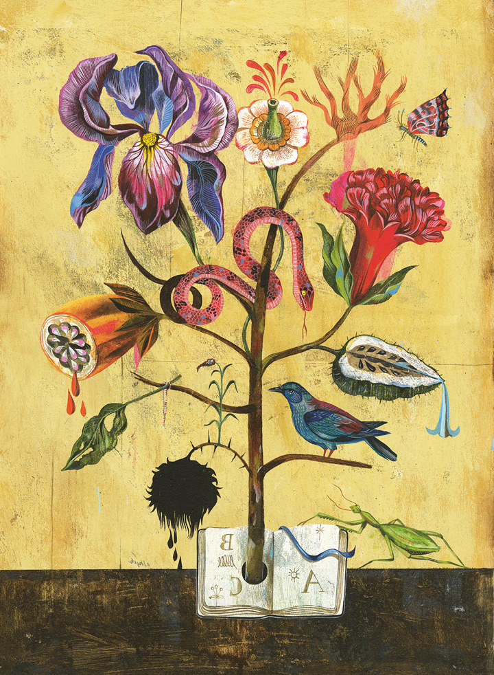 Работа Олафа Хайека «Цветы разума», 30x40 cм, акрил по дереву, 2011