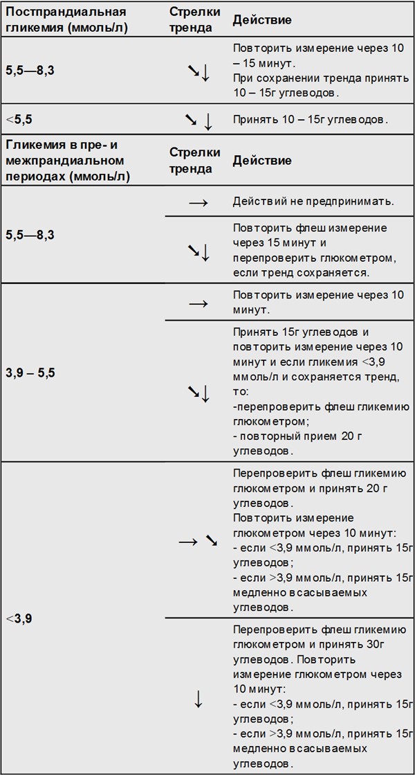 В случае подтверждённой гипогликемии и после выхода из этого состояния рекомендуется перепроверять значение флеш гликемии глюкометром.