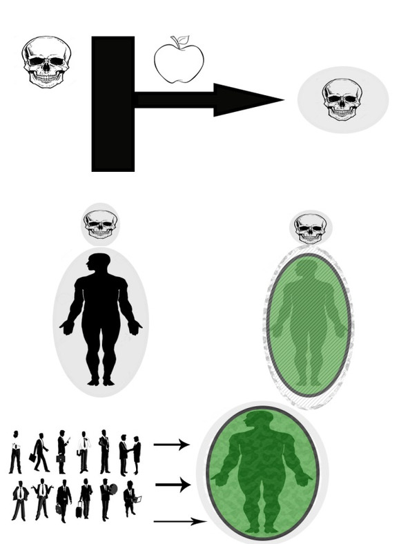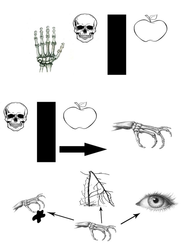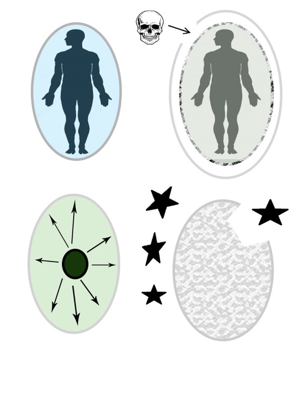 Создаётся рука в пространстве смерти. Данная структура уплотняется за счёт детализации. Данный объект может перемещаться между пространствами, чувствовать, видеть, брать, разрушать, очищать.