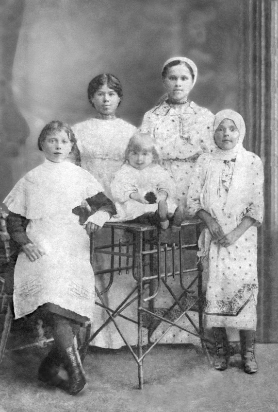 На этом фото которое сделано в 1920 году справа маленькая Ирина Васильевна и вверху справа её сестра Елена Васильевна. Фото сделано скорее всего в доме княгини Кудашевой вместе с её подружками (возможно Соня и Шура). Василия Андреевича под конвоем доставили в его село и велели идти домой. Это был год около 1908.