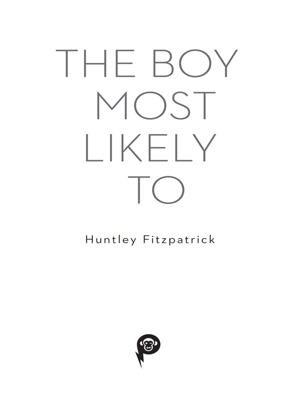 I scan the room one last time. Tacked to the corkboard over my desk is a sheet of paper with the words THE BOY MOST LIKELY TO scrawled in red marker at the top. One of the few days last fall I remember clearly – hanging with a bunch of my (loser) friends at Ellery out by the boathouse where they stowed the kayaks (and the stoners). We came up with our antidote to those stupid yearbook lists: Most likely to be a millionaire by twenty-five. Most likely to star in her own reality show. Most likely to get an NFL contract. Don’t know why I kept the thing.