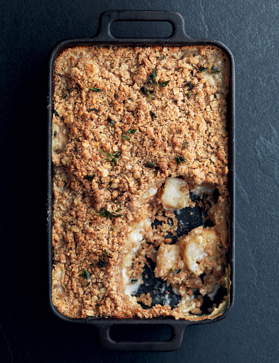 To make the crumble, mix all ingredients together in a bowl. Season well then crumble on top of the parsnips and horseradish sauce.