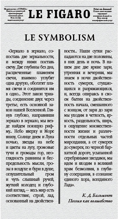 Предвестником этого возрождения стал манифест поэтов-символистов, опубликованный 18 сентября 1886 года в газете «Le Figaro». Поэты первой символической волны «дерзко и страстно» придавали чувственно постижимую форму идеям. Столетие спустя пришел настоящий символический вал. Новая формация символистов – цифровые технократы и биржевые игроки. Они с головой погрузились в символическую стратосферу – в сферу прогнозов, ожиданий и симуляций. Они стали той силой, которая обеспечила триумфальный успех цифровой революции.