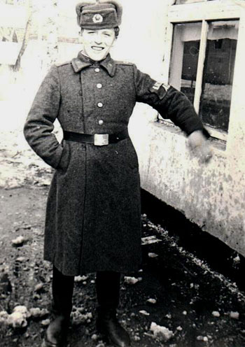 Я пришлю фото, где снялся с командиром роты для стенгазеты. Это на ученьях было, в декабре, а я фото с неё вырезал, пришлю вам.