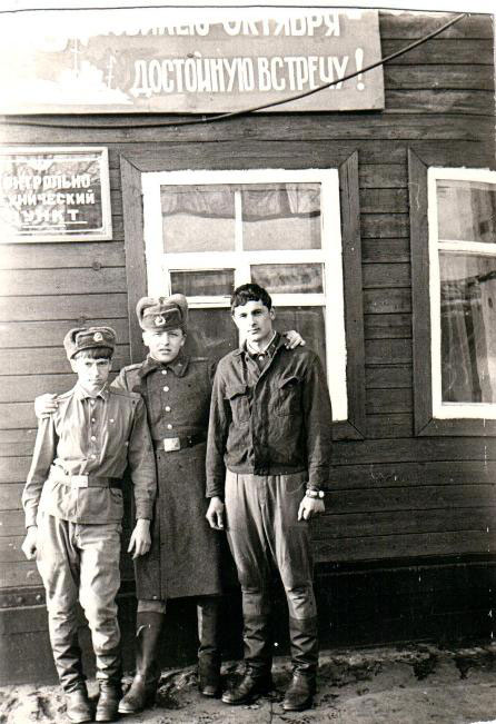 Тут я стал спорщиком. У нас тут спартакиада была, и я учувствовал в стрельбе, прыжках в длину, и плавании. Оказывается, я хорошо стреляю, и притом, вчера был день авиации. И у нас был парад. А после, перед строем комбат зачитал мне благодарность. Некоторым даже увольнение или отпуск. Но, они, кто 1 год, кто 9 месяцев прослужили. Вот, я даже не ожидал. Зачитали мою фамилию. Я вышел из строя, покраснел. А кореша смотрят, за что, мол, так меня. Так, что я, видишь, отличился в спорте.