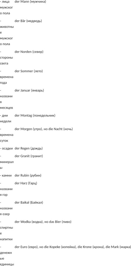 der Friede – мир, der Wille – воля, der Buchstabe – буква,