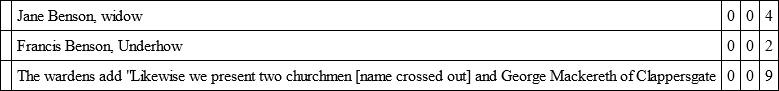 From wardens' accounts and presentments we gain many particulars of the dissenters of the parish, who appear to diminish in number as time goes on. It had become necessary by 1694 to account, in the books, for the deficit caused by the Friends' non-payment; and though in the following year two of them yielded, Bernard Benson paying up the large arrears of 15s. 11d. for "Church: Sess," and Jacob Holme 7s. 6d., the "Allowance for Dissenters" appears each year on the debit side.