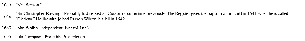 Of other rectors of the post-Reformation period we know little or nothing. Richard, "clericus," was taxed in 1332 on goods worth £4, a sum higher by £1 than any land-holding parishioner in the three townships.94
