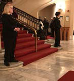 Когда мы пришли на следующий концерт, Юра обратил внимание, что по обоим краям лестницы, вернее двух лестниц, с обеих сторон фойе, стоят дежурные в ливреях. То же оказалось и в перерыве и после окончания концерта. Вначале мы решили, что это случайность, однако это происходит уже в течение более десяти лет: на каждом краю лестницы стоит часовой. Поставили стражей предотвращать спотыкания о лестницу, которые приводят (могут приводить) к падению вроде моего. Техника безопасности – это святое.