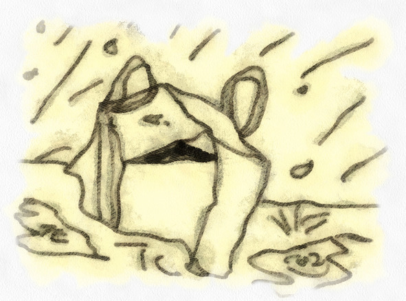 Вечерние сумерки постепенно переходили в ночную темноту. На окраине города, в небольшом посёлке возле промышленной зоны Вулфс-Филд, было тоскливо, редкие автомобили с рёвом пролетали по мокрой дороге, обдавая окрестные деревья и кустарники потоками грязноватой пенистой воды. На стоянке для автобусов, где они могли заправить батареи и провести обязательную диагностику после половины рабочего движения, никого не было. На самом краю остановочной площадки стояла коробка желтоватого цвета, словно укор коммунальным службам города. Дождь бил по коробке, из которой доносились подозрительные звуки. Редкие прохожие обходили коробку с громогласным лозунгом очистить весь воздух. Те лужи, которые собирались вокруг коробки были покрыты подозрительными маслянистыми разводами. Мимо коробки прошествовал пёс в золотистом ошейнике, с волчьей внешностью и кошачьим нравом. Он понюхал коробку, от которой несло машинным маслом и чем-то химическим, и намеревался было задрать ногу, как вдруг откуда-то раздался раздражённый голос. Голос слегка тремолировал, и казался немного приглушённым, будто бы исходил из-под данной коробки. Пёс насторожился, и попятился, прижав уши и зарычав, скорее, чтобы показать свои зубы, надеясь скрыть свой страх, чем реально пытаясь напугать неизвестного. Голос стал чётче и уже вполне явственно угрожал псу.