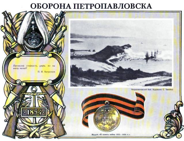 С высоты Мишенной сопки как на ладони – порт Петропавловска и вся Авачинская губа. Слева и справа высятся вулканы. Вдалеке, у самого входа в бухту, видны полтора десятка чёрных точек – англо-французская эскадра.