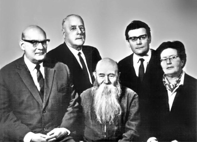 Борис Поршнев (слева) и Петр Смолин (в первом ряду, в центре)