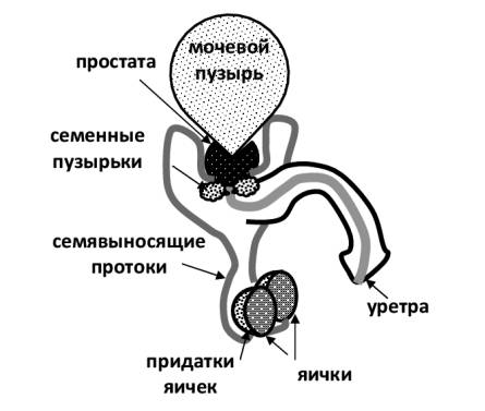 –семявыносящие протоки: по ним во время эякуляции проходит сперма; здесь она смешивается с жидкостью семенных пузырьков и предстательной железы, затем в результате сокращения простаты и мышц тазового дна выбрасывается наружу через уретру.