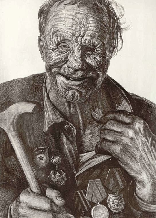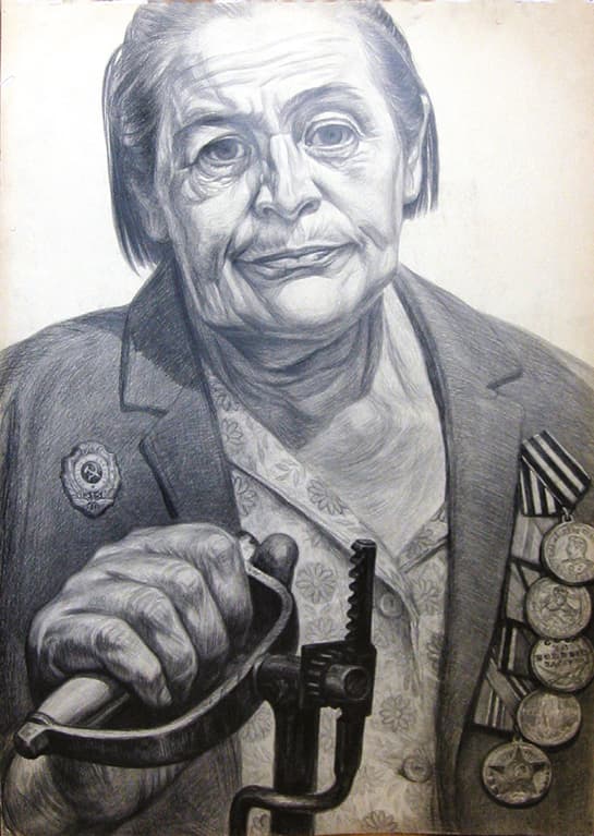 Сразу же во время моей работы выявилось одно негативное обстоятельство. Я делал рисунки большого размера, в натуральную величину лица или, может быть, даже немножко больше. А карандаши и бумага были не совсем то, что нужно. Бумага оказалась тонкой, а наши советские карандаши вообще не позволяли взять необходимую черноту, например, пиджака. И долго приходилось рисовать одно и то же место, чтобы набрать хотя бы относительную плотность на листе. В общем, я мучился.