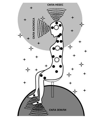 В процессе своей жизнедеятельности мы постоянно получаем и используем жизненную энергию ци (приобретенная). Основными ее источниками являются пища, воздух и вода. Кроме этого, мы черпаем энергию из внешних потоков: Силы Вселенной, Космоса и Земли, даже если этого не осознаем (рис. 2).
