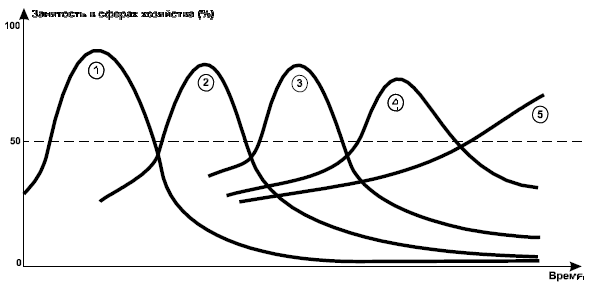 Одним из критериев перехода общества к постиндустриальной и далее к информационной стадии своего развития может служить процент трудоспособного населения, занятого в сфере услуг – критерий занятости: