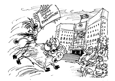 Проекту соответствует лозунг, провозглашенный Французской революцией и определивший принципы демократии. Ибо налицо: СВО- БОДА – хочешь бери, если дают, хочешь давай, если есть что и за что; РАВЕНСТВО – равные взятки уравнивают перед законом; БРАТСТВО – все участники процесса братаны и могут меняться местами.