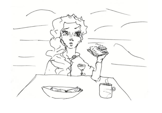 Она играла словно из радиоприемника, и Марта, с трудом оторвавшись взглядом от сосен, повернула голову куда-то вправо. Мимо нее, сквозь пелену дыма и облаков, под аккомпанемент заунывной мелодии, медленно проплывал дубовый стол с тарелкой сырных бутербродов и парой чашек чая на нем. За столом сидела девочка с бутербродом в руках и остолбеневшим взглядом провожала проплывающую мимо Марту.