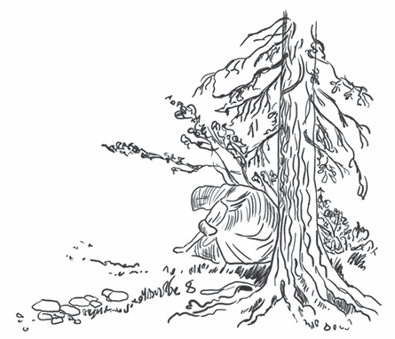 Ее мы нашли в трехстах метрах от нашего бивака, на берегу Кожвы – маленького притока холодной Печоры. Она сидела на снегу, прислонясь спиной к стволу дерева. Голова закутана теплым платком. Из-под него странно блестели большие глаза с инеем на ресницах. Рядом валялся туго набитый дорожный мешок.