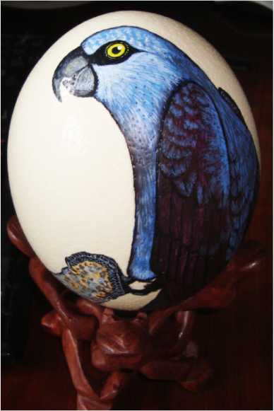 Нужно было привезти какой-нибудь оригинальный подарок основателю и директору Лоро Парка. Мы подумали и решили приобрести российское вино, изготовленное из краснодарского винограда и, зная, что директор собирает всевозможные сувениры, связанные с попугаями, нарисовать малого голубого ару (он же ара Спикса) на страусином яйце. Поскольку разрисовывать страусиные яйца я начала уже давно, еще, когда мы жили в Саудовской Аравии, а муж работал там директором национального зоопарка, этот подарок показался нам оригинальным и необычным.