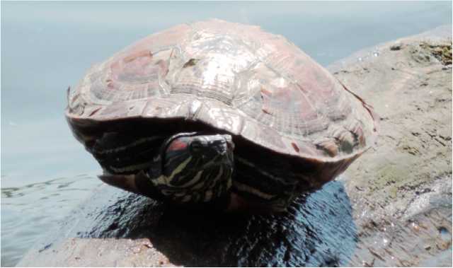 Женя зажмурила глаза, подставила лицо теплым лучам солнца. Легкий шум листвы расслаблял не только тело, но и душу, звенящая песенка комариных крыльев вернула ее к действительности. Она открыла глаза и увидела: на частично погруженной в воду раките по ушедшей под воду ветке выползает на солнышко довольно большая черепаха. На голове, шее и конечностях черепахи был обозначен рисунок из белых и зелёных волнистых полос и пятен, две длинные ярко красные полоски протянулись рядом с глазами. Красноухая черепаха – вид черепах из семейства американских пресноводных черепах. Откуда она взялась в водах Серебряного Бора в Москве? Её ареал охватывает США от юга Виргинии до севера Флориды и Канзаса, Оклахомы и Нью-Мексико на западе, Мексику, всю Центральную Америку, северо-запад Южной Америки, север Колумбии и Венесуэлы. Обитает в мелких озёрах, прудах и других водоёмах с низкими, заболоченными берегами. В водоёмах очень грязных. Ведёт относительно малоподвижный образ жизни. Крайне любопытна. Если черепаха сыта, она вылезает на берег и греется под солнечными лучами. Если голодна, то неспешно плавает в поисках пищи. При температуре воды ниже +18 °C черепаха становится вялой, у неё пропадает аппетит.