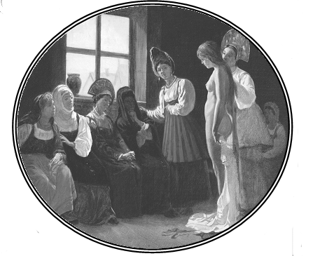 Тогда прибегали к такой дивной мере: раздевали невесту догола и выводили пред лицо жениха за косу.