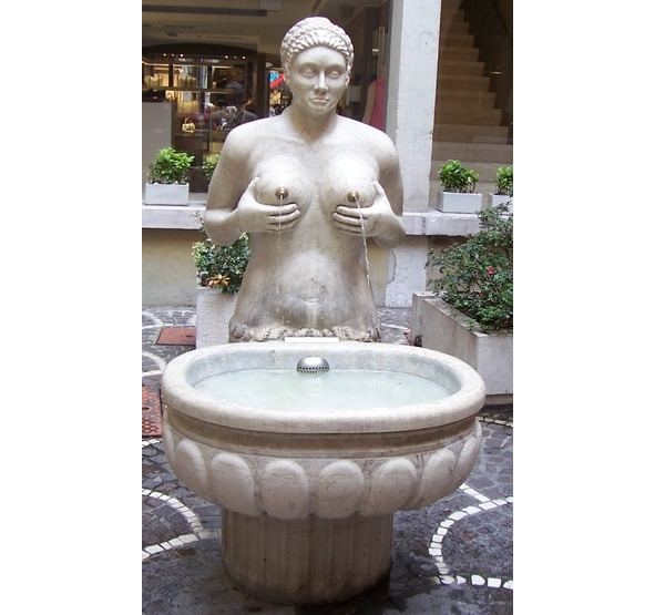 В Тревизо есть один замечательный памятник, который можно назвать «Памятником Гекубе – Кенотафом или Киноссемой». Это: – «Фонтан Титек» [Рис. IX. I]. Из двух сосцов женщины непрерывно текут струи в чашу. Так царица Гекуба непрерывно вскармливает своим молоком многочисленных своих детей.