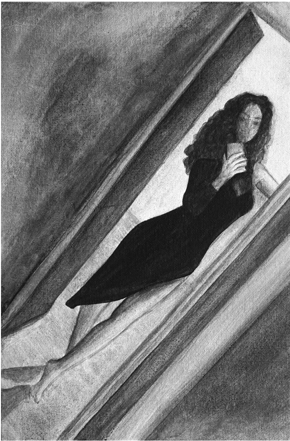 I’d become hungry and thirsty and had the beginnings of a cramp in my calf. Something tried to pull me to the door. What’s happening? Suddenly, the woman in bed paused, snifef d, and scanned the room.