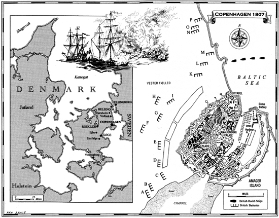 In truth Captain Willsen was intrigued. He had served twelve years in the British army and had never heard a shot fired in anger. He yearned to distinguish himself and now, quite suddenly, a chance had arisen because an officer was needed to escort the Duke of York’s aide to Copenhagen. That was all Willsen knew, though his commanding officer had hinted that his facility with small arms might be a great advantage. Willsen had been worried at first, fearing that he would be fighting against his father’s people, but he had been assured that the danger in Copenhagen came from the French, not the Danes, and that assurance had permitted Willsen to accept the responsibility, just as it had piqued his curiosity. Now Lavisser was offering to explain and Willsen, who knew he had been churlish, nodded. ‘Of course. It will be a pleasure to dine with you, sir.’