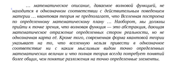 Объясняя же возможные последствия подтверждения квантового описания в эксперименте, Бом пишет: